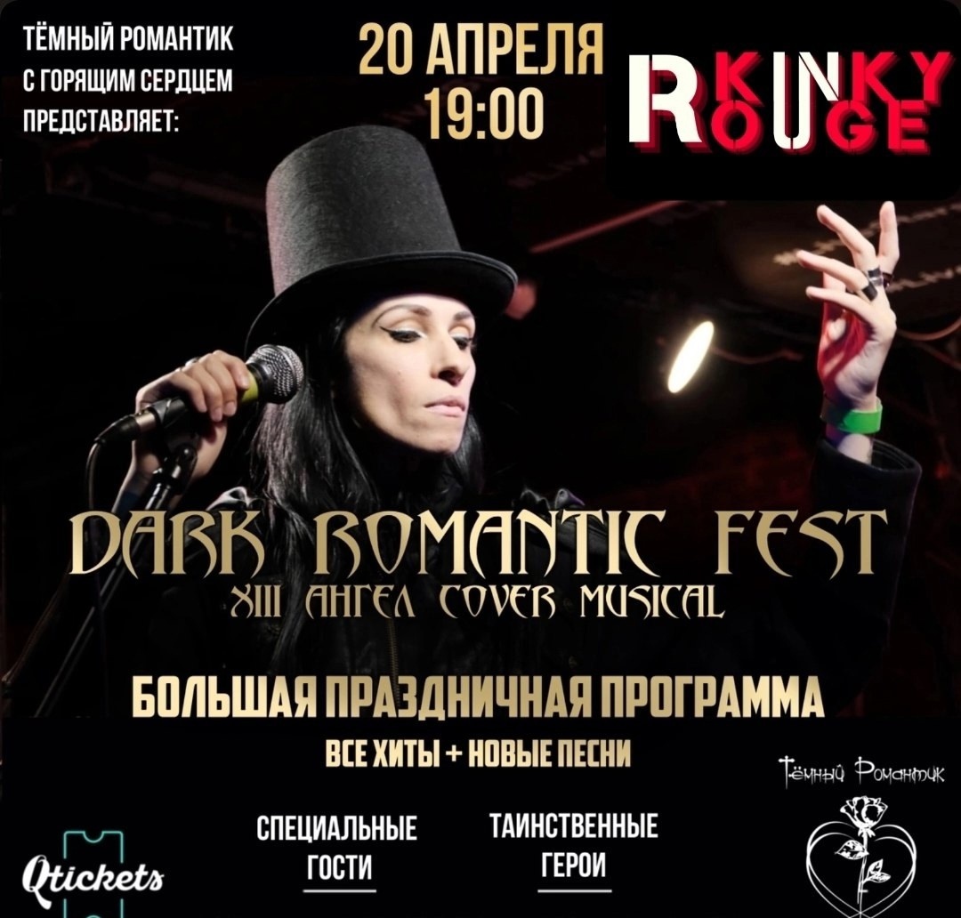 Друзья! Спешим сообщить прекрасную новость! Dark Romantic Fest | Kinky Rouge 20.04.25 состоится в клубе Kinky Rouge! Ещё больше удовольствия, атмосфера дружелюбия и счастья, и конечно же, Тёмная Романтика ждут Вас! Ещё больше специальных гостей, УДОБСТВ И СЧАСТЬЯ! Свобода творить, быть собой и ощутить долгожданную гармонию наших Пламенных Сердец!